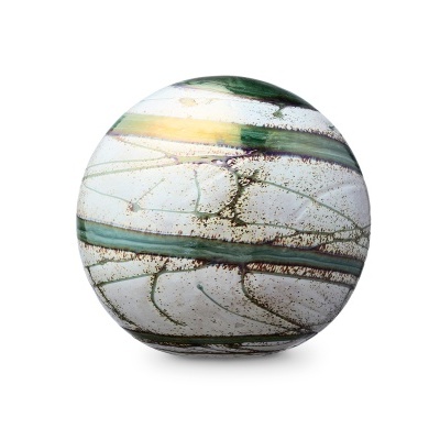 De Elan-line is geïnspireerd op de 4 elementen uit de natuur: aarde, water, lucht en vuur. De 4 elementen vertalen de hartstocht "het vuur" van de krachten in de natuur. De Elan-line vertegenwoordigd een collectie as-gedenkornamenten met voornamelijk ronde vormen en zijn verkrijgbaar in diverse kleurcombinaties. De Elan-line is een unieke collectie urnen die met bezieling is vervaardigd. De Elan-line Adventure Green is een middelgroot sierlijk as-gedenkornament met een ronde vorm. Het as-gedenkornament heeft een kleurencombinatie van blauw-groen tinten met een vleugje wit. Het marmer effect en de zachte parelmoerglans geeft een prachtige uitstraling aan dit as-gedenkornament. Aan de binnenzijde bevindt zich een as-reservoir waar een gedeelte van het crematie-as in bewaard kan worden. Het as-reservoir wordt afgesloten d.m.v. een zelf-hechtende sluitplaat. Het as-gedenkornament is niet transparant dus het crematie-as is niet zichtbaar. De Elan-line Adventure Green is een waar sieraad ter herinnering aan uw dierbare. Alle as-gedenkornamenten zijn van glas en met de hand vervaardigd. Dat maakt elk ornament uniek.